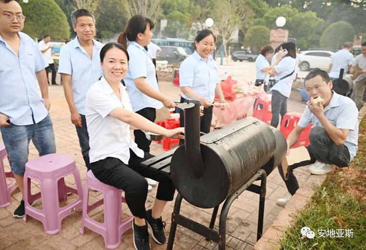 歡聲笑語隨著縷縷炊煙飄蕩在空中,大家烤的烤、扇風(fēng)的扇風(fēng)、刷料的刷料、準備食材的準備食材、吃的吃、喝酒的、喝可樂的不忘舉杯對飲,短短2個小時,大家相互協(xié)作,相互探討又相互調(diào)侃,整個場面是如此的和諧、放松而又自在,將所有的不愉快和壓力統(tǒng)統(tǒng)甩到了一邊。